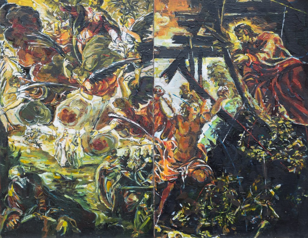 Dear Jacopo, The Temptation and Ascension of Christ, oil on board, diptych, 21.5 x 27.5cm