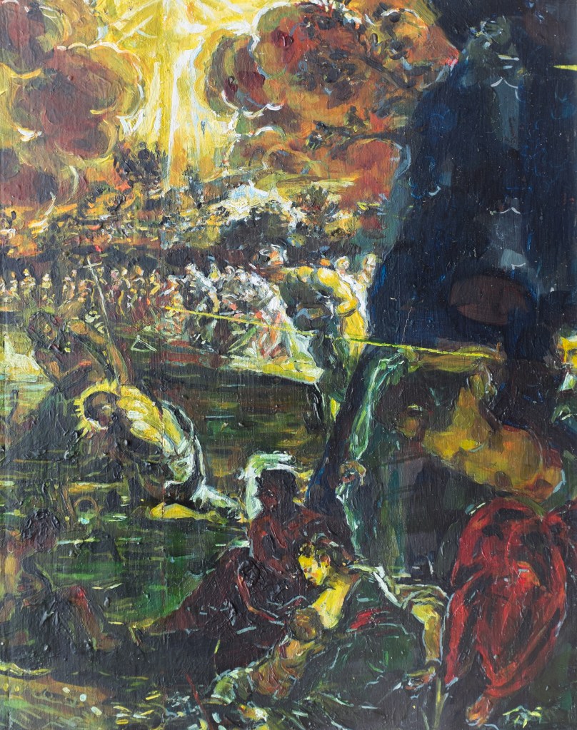 Dear Jacopo, Moses Drawing Water From the Rock, oil on board, 17.5 x 15cm