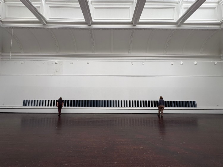 Ode to Hope consists of 64 panels (each 25 x 60cm) that, when combined, make a 16m long painting with a rotational/zoetrope like effect.