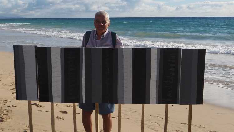 Gianni from Italy with my work, Mattarol Beach, Fuertaventura, December 2025